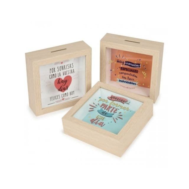 Comprar Hucha madera frases por 6,50€. Producto en stock, recogida en tienda.